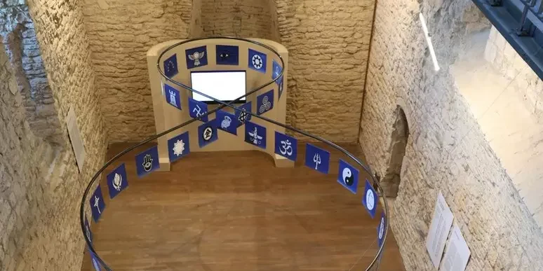 La mostra si configura come un viaggio attraverso religioni e filosofie, con materiali fotografici che dialogano con l’opera permanente nel Bosco di San Francesco, visibile dalla Torre Poligonale della Rocca Maggiore. Il percorso culmina con un’installazione video dedicata alla santificazione artistica di Papa Francesco, atto performativo che restituisce la proclamazione alla dimensione collettiva dell’arte.