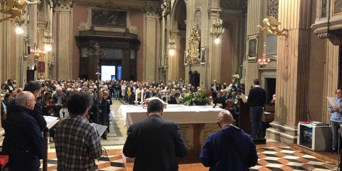 Una serata nella sua parrocchia, circondato dai fedeli che nei giorni scorsi non gli hanno mai fatto mancare il loro sostegno, ma anche dai vertici della Diocesi di Brescia che l’avevano pubblicamente richiamatoper quella messa celebrata in tenuta da ciclista tra gli ulivi di Mazara del Vallo: don Fabio Corazzina, parroco di Santa Maria Nascente nel quartiere bresciano di Fiumicello, riparte dalla “preghiera di riconciliazione” organizzata dalle Acli provinciali per lasciarsi alle spalle le polemiche di cui è stato suo malgrado protagonista nelle ultime settimane. L’evento non è stato trasmesso in diretta su Facebook com’era invece accaduto per la messa siciliana che ha fatto tanto discutere – dato che la reazione del vescovo di Brescia Pierantonio Tremolada era arrivata proprio a seguito di alcuni commenti scandalizzati postati sui social dopo la pubblicazione di quel video – ma don Corazzina ha comunque condiviso il foglio utilizzato come traccia per la celebrazione.