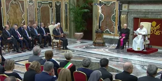 Parlando del significato della politica, il Papa cita San Paolo VI che “disse che quanti esercitano il potere pubblico devono considerarsi come i servitori dei loro compatrioti, con il disinteresse e l’integrità che convengono alla loro alta funzione. Eppure, sappiamo bene quanto ciò non sia facile e come la tentazione diffusa, in ogni tempo, anche nei migliori sistemi politici, sia di servirsi dell’autorità anziché di servire attraverso l’autorità. Com’è facile salire sul piedistallo e com’è difficile calarsi nel servizio degli altri”. “Credo che oggi – ha aggiunto – il conferimento del Premio Paolo VI al Presidente Mattarella sia proprio una bella occasione per celebrare il valore e la dignità del servizio, lo stile più alto del vivere, che pone gli altri prima delle proprie aspettative. Che ciò sia vero per Lei, Signor Presidente, lo testimonia il popolo italiano, che non dimentica la sua rinuncia al meritato riposo fatta in nome del servizio richiestole dallo Stato. Servire crea gioia e fa bene anzitutto a chi serve”.