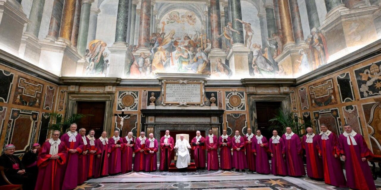Quindi ha esortato ad un’applicazione attenta delle norme: ”È evidente – ma ci tengo a ribadirlo in questa sede – che la riforma interpella in modo forte la vostra prudenza nell’applicare le norme. E questo richiede due grandi virtù: la prudenza e la giustizia, che devono essere informate dalla carità”. Infine, ha incoraggiato i giudici della Rota: ”Cari fratelli, la Chiesa vi affida un compito di grande responsabilità, ma prima ancora di grande bellezza: aiutare a purificare e ripristinare le relazioni interpersonali”.