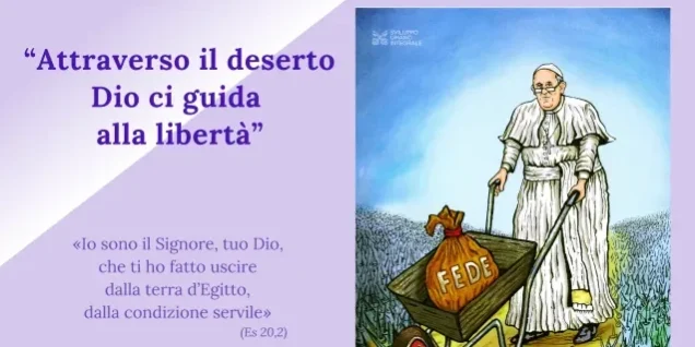 La Quaresima per il Papa é come il deserto “lo spazio in cui la nostra libertà può maturare in una personale decisione di non ricadere schiava. Nella Quaresima troviamo nuovi criteri di giudizio e una comunità con cui inoltrarci su una strada mai percorsa”. Rimangono i pericoli degli idoli che sono le “menzogne del nemico” per cui “possiamo attaccarci così al denaro, a certi progetti, idee, obiettivi, alla nostra posizione, a una tradizione, persino ad alcune persone. Invece di muoverci, ci paralizzeranno. Invece di farci incontrare, ci contrapporranno. Esiste però una nuova umanità, il popolo dei piccoli e degli umili che non hanno ceduto al fascino della menzogna. Mentre gli idoli rendono muti, ciechi, sordi, immobili quelli che li servono , i poveri di spirito sono subito aperti e pronti: una silenziosa forza di bene che cura e sostiene il mondo”.