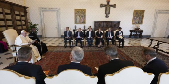 L”Appello di Vienna’, firmato l’11 giugno 2022, che invita gli Stati membri del Consiglio d’Europa a impegnarsi in favore dello Stato di diritto e dell’indipendenza della giustizia, “si colloca nel contesto europeo attuale, difficile sotto molti aspetti, a motivo, tra l’altro, della guerra insensata in Ucraina”. Lo ha sottolineato il Papà ricevendo stamane in udienza una delegazione di avvocati di Paesi membri del Consiglio d’Europa firmatari dell’Appello di Vienna. “Vi ringrazio per il contributo importante che offrite alla promozione della democrazia e del rispetto della libertà e della dignità umana – ha osservato il Pontefice -. I tempi di crisi sociale, economica, identitaria e di sicurezza sfidano le democrazie occidentali a rispondervi efficacemente, rimanendo però sempre fedeli ai loro principi; principi da riconquistare continuamente e la cui difesa richiede una grande vigilanza”. Francesco ha avvertito che “la paura di disordini e violenze, la prospettiva di rivolgimenti degli equilibri stabiliti, la necessità di agire con efficacia davanti alle urgenze possono indurre nella tentazione di fare eccezioni, di limitare – almeno provvisoriamente – lo Stato di diritto nella ricerca di soluzioni facili e immediate”. “Mi sembra dunque importante – ha proseguito – che voi reclamiate, in una delle vostre proposizioni, che ‘lo Stato di diritto non sia fatto mai oggetto della minima eccezione, anche in tempo di crisi’. La ragione è che lo Stato di diritto è al servizio della persona umana e mira a tutelarne la dignità, e ciò non ammette alcuna eccezione. È un principio”. Il Papa ha anche richiamato a che “il rispetto dei diritti umani può essere assicurato e uno Stato di diritto può trovare solidità solo nella misura in cui i popoli restano fedeli alle loro radici che si nutrono della verità, la quale costituisce la linfa vitale di qualsiasi società che aspiri ad essere veramente libera, umana e solidale”.