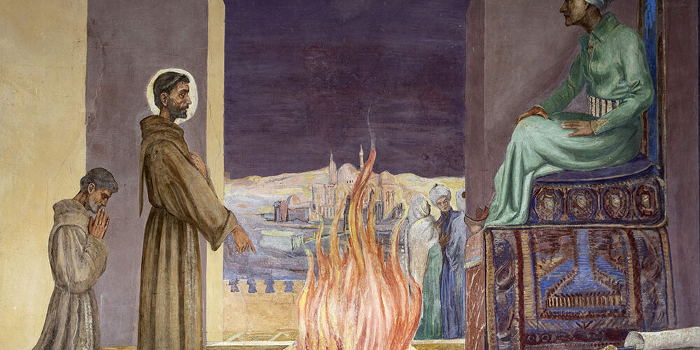 Con questo come sfondo, Francesco viaggiò notoriamente da Assisi, Italia, all’Egitto nel 1219 e si avvicinò al campo dei crociati. La sua intenzione era quella di portare un messaggio di pace al sultano Malik Al-Kamil, il leader dell’esercito musulmano, che gli richiedeva di entrare nella mischia. I resoconti medievali dell’evento ricordano che il cardinale Pelagio di Albano, Italia, il legato papale e capo dell’esercito cristiano, proibì a Francesco di attraversare il territorio nemico per paura per la sicurezza di Francesco.