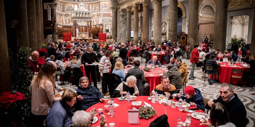 Un messaggio di solidarietà ma anche – soprattutto – di pace, in questo tempo attraversato da troppe guerre e una povertà crescente. E’ l’augurio che sale dai pranzi di Natale di Sant’Egidio, che oggi si sono tenuti a Roma, e in 70 paesi: un Natale di speranza in un tempo segnato dalla crisi e dai conflitti in Terra Santa, Ucraina e in diversi altri paesi, con tutte le loro conseguenze. Questa tradizione di Sant’Egidio è iniziata a Roma, il 25 dicembre di 41 anni fa, nella basilica di Santa Maria in Trastevere che anche oggi è divenuta il luogo di una festa a cui hanno partecipato tante persone senza dimora, anziani, rifugiati, tra cui alcune famiglie arrivate in Italia grazie ai corridoi umanitari e accolte dalla Comunità. Insieme a loro tanti che, alla ricerca del vero senso del Natale, hanno voluto condividere questa giornata con la Comunità, e hanno preso parte a questa festa in cui chi aiuta si confonde con chi è aiutato.